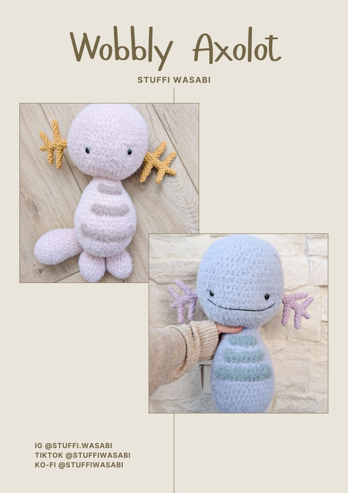 This product is a crochet pattern for “Wobbly Axolot,” inspired by the Pokemon Wooper.