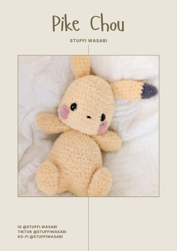 This product is a crochet pattern for “Pike Chou,” inspired by the Pokemon Pikachu.